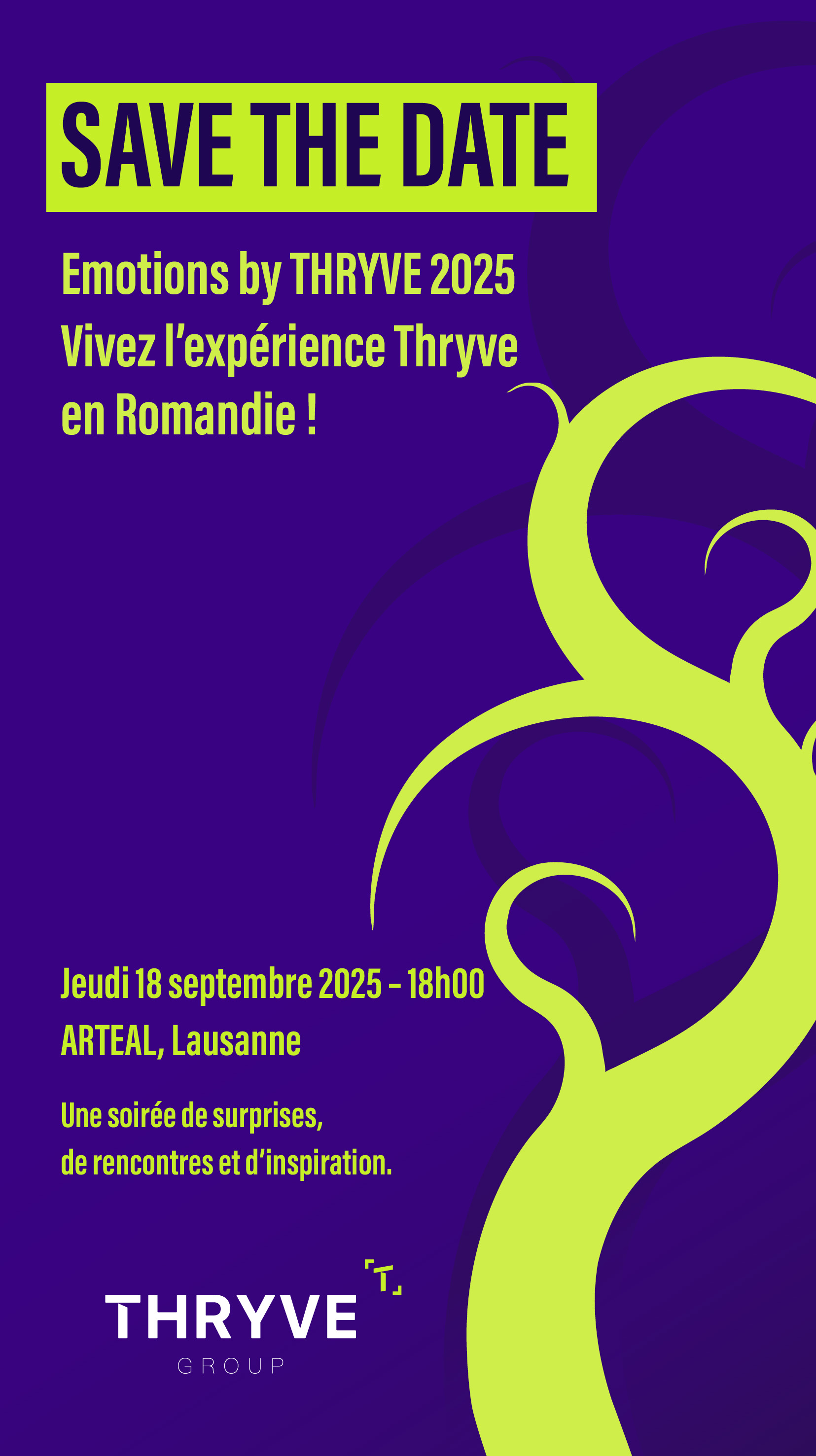 Nous sommes heureux de célébrer avec vous le lancement officiel de THRYVE en Romandie — un moment placé sous le signe des émotions, des échanges et de la convivialité. Au-delà d’un simple rendez-vous, cet événement se veut un espace d’échanges, de découvertes et de rencontres.
